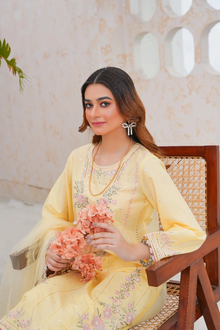 Embroidered Lawn Shirt: Crafted from premium-quality lawn fabric, the shirt features delicate embroidery on the front and sleeves, creating a timeless and graceful look perfect for both day and evening wear.