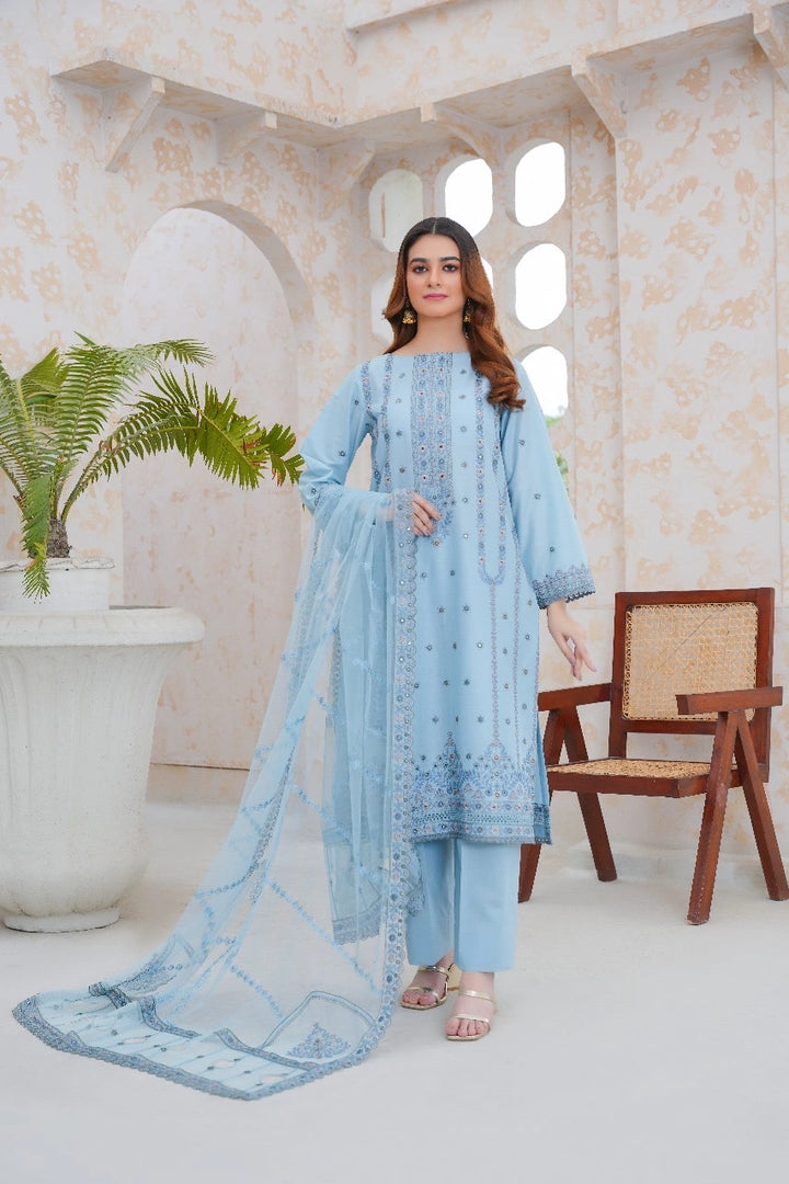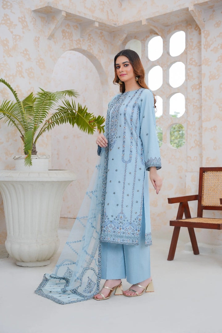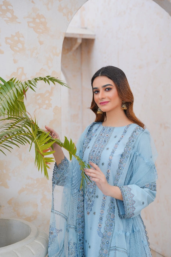 Embroidered Lawn Shirt: Crafted from premium-quality lawn fabric, the shirt features delicate embroidery on the front and sleeves, creating a timeless and graceful look perfect for both day and evening wear.
