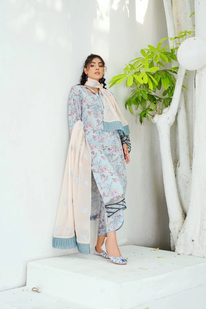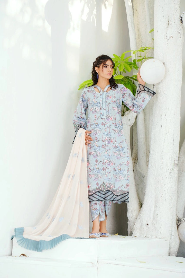 Printed Lawn Trouser: Coordinated with a matching printed lawn trouser, this outfit delivers a cohesive and fashionable look. The fabric is lightweight and easy to tailor, making it ideal for everyday use.