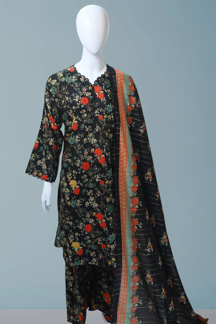 Step into style with Urban Charm, a chic stitched 3-piece printed lawn suit for women. This elegant outfit features a stitched printed shirt, paired with a matching same-printed trouser, and a soft lawn dupatta that completes the look with grace and comfort.