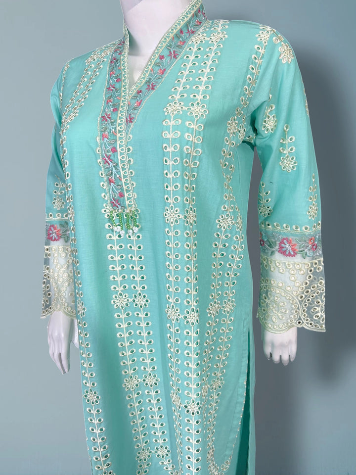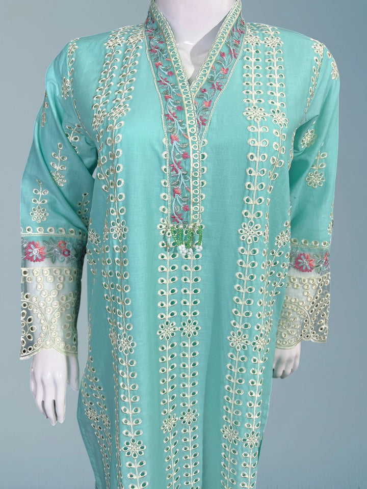 Designed with fine detailing and breathable fabric, Blooming Grace is perfect for formal events, festive gatherings, and evening wear. The soft chiffon dupatta complements the richly embroidered shirt, creating a timeless outfit that combines comfort, style, and durability.