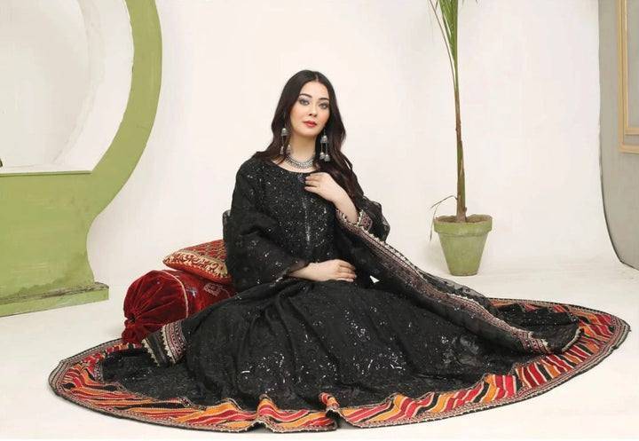 Turn heads at any festive occasion with this elegant 3-piece formal stitched suit, meticulously crafted for wedding events, receptions, and formal celebrations. This luxurious ensemble showcases timeless elegance through intricate embroidery, rich textures, and refined detailing.