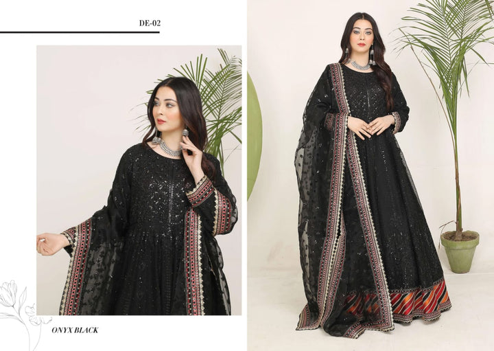 Embroidered Chiffon Dupatta: The ensemble is complemented by a matching embroidered chiffon dupatta that drapes effortlessly, adding fluidity and charm to the overall outfit.