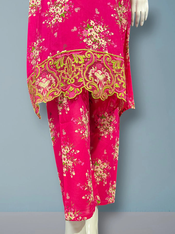 Meadow Mist – Stitched Printed Lawn Suit with Embroidered Neck & Domind Dupatta 🌿