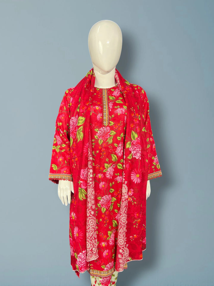 Step into effortless elegance with Rangrez Aura. This ready-to-wear set features a stitched printed lawn shirt and matching trouser, paired with a soft lawn dupatta for a graceful finish. Designed for comfort and style, it’s the perfect choice to brighten up your everyday look.