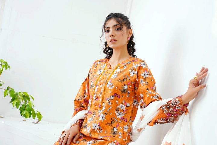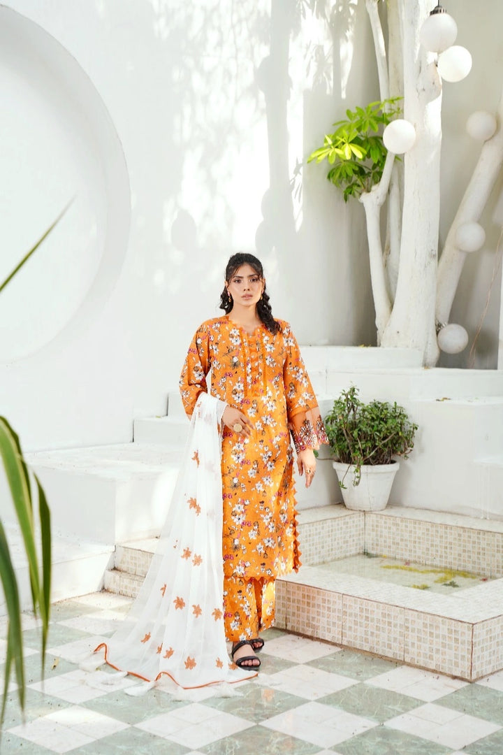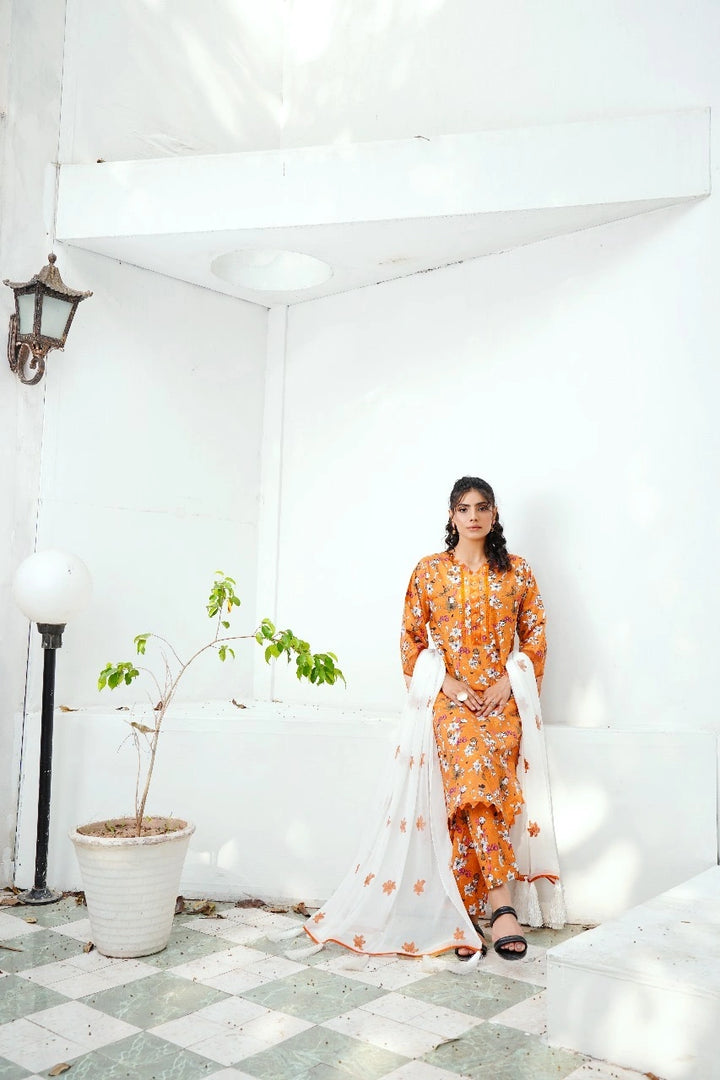 • Printed Lawn Trouser: Coordinated with a matching printed lawn trouser, this outfit delivers a cohesive and fashionable look. The fabric is lightweight and easy to tailor, making it ideal for everyday use.